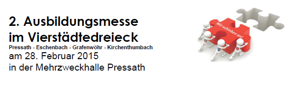 Wir möchten Euch herzlich einladen zu unserer Ausbildungsmesse am Samstag, 28. Februar 2015 von 9-14 Uhr in die Mehrzweckhalle in Pressath.