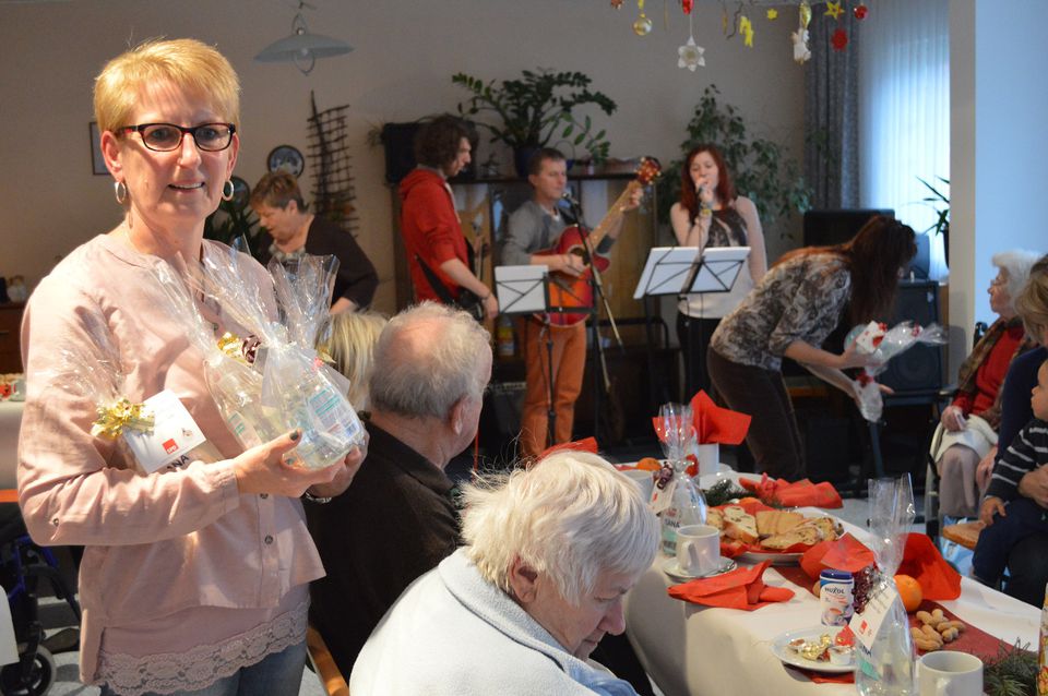 Grafenwöhr. (myd) Schön geschmückt waren die Tische im Seniorenheim St. Sebastian zur Adventsfeier. Die Pflegekräfte tischten Kaffee, Glühwein, Stollen und Plätzchen auf. Das hatte einen guten Grund. Die Verantwortlichen des Arbeitskreises sozialdemokratischer Frauen (AsF) statteten auch heuer wieder den Bewohnern in der Adventszeit einen Besuch ab und verbrachten mit ihnen einen Nachmittag. AsF-Vorsitzende Conny Öttl-Spitaler begrüßte im vollbesetzten Saal dazu alle Anwesenden und wünschte eine schöne gemeinsame Zeit. Den Pflegekräften und weiterem Personal des Hauses sagte sie herzlichen Dank für die wertvolle Arbeit, die hier geleistet wird. Für flotte Weihnachtsmelodien sorgten Benno Englhart (Gitarre, E-Gitarre, E-Bass, Gesang) Michael Bräutigam (E-Gitarre) und Eva Mayer (Gesang). Bei rhytmischen Weihnachtsliedern, wie „Rudi the red nose reindeer“ oder „Jingle Bells“ kam gleich ausgelassene Stimmung auf. Ruhigere Töne ließ das Trio beispielsweise mit traditionellen Weihnachtsliedern, „Halleluja“ oder „Feliz Navidad“ anklingen. Während dessen überreichte die SPD-Damen kleine Präsente an die Bewohner und vertieften sich in das ein oder andere Gespräch. Auch der SPD-Ortsvereinsvorsitzende Thomas Weiß ließ es sich nicht nehmen, den Senioren und Personal einen Besuch abzustatten. Er dankte dem Personal des Hauses für die wichtige Arbeit und überreichte an Heimleitung Brigitte Adam einen Spendenscheck. Benno Englhart ließ abschließend einige Lieder auf dem Alphorn erklingen. Bei „Es wird scho glei dumpa“ setzten die Senioren ohne zu zögern mit ein und sangen weitere Weihnachtslieder.