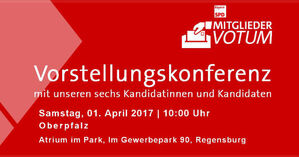 Am 01.04. findet in Regensburg die Vorstellungskonferenz für die Oberpfalz mit den Bewerbern für den Vorsitz der BayernSPD statt.